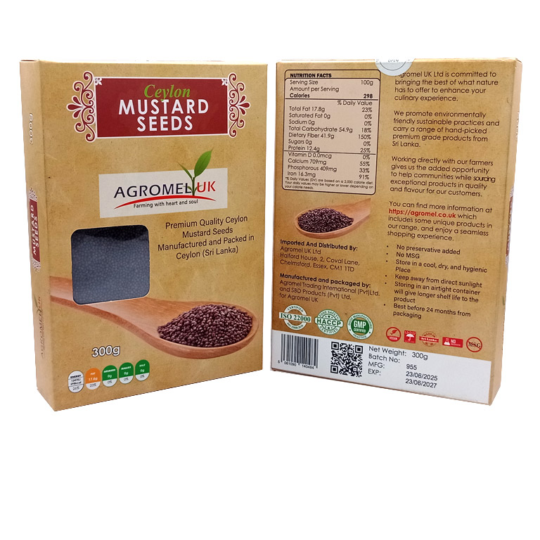 Ceylon Mustard Seeds are small yet powerful, known for their sharp, nutty flavour and distinctive aroma. When heated, they release a rich, earthy taste that enhances curries, pickles, and tempering oils — a key element in authentic Sri Lankan cooking.