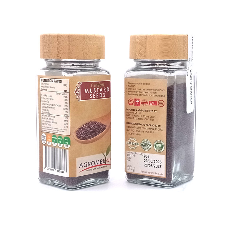 Ceylon Mustard Seeds are small yet powerful, known for their sharp, nutty flavour and distinctive aroma. When heated, they release a rich, earthy taste that enhances curries, pickles, and tempering oils — a key element in authentic Sri Lankan cooking.