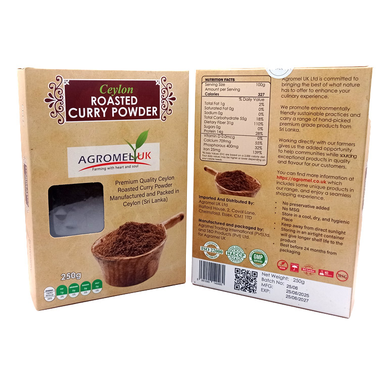Ceylon Roasted Curry Powder is a traditional Sri Lankan spice blend, carefully roasted to perfection to bring out a deep, smoky aroma and bold, full-bodied flavour. Made from a mix of premium spices such as coriander, cumin, fennel, mustard seeds, and curry leaves, it adds authentic Sri Lankan richness to any dish.