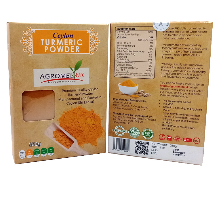 Ceylon Turmeric Powder is crafted from premium, sun-dried turmeric roots, finely ground to preserve their rich golden colour and earthy aroma. Renowned for its vibrant flavour and potent health benefits, turmeric is a staple in Sri Lankan cooking and traditional natural wellness practices.